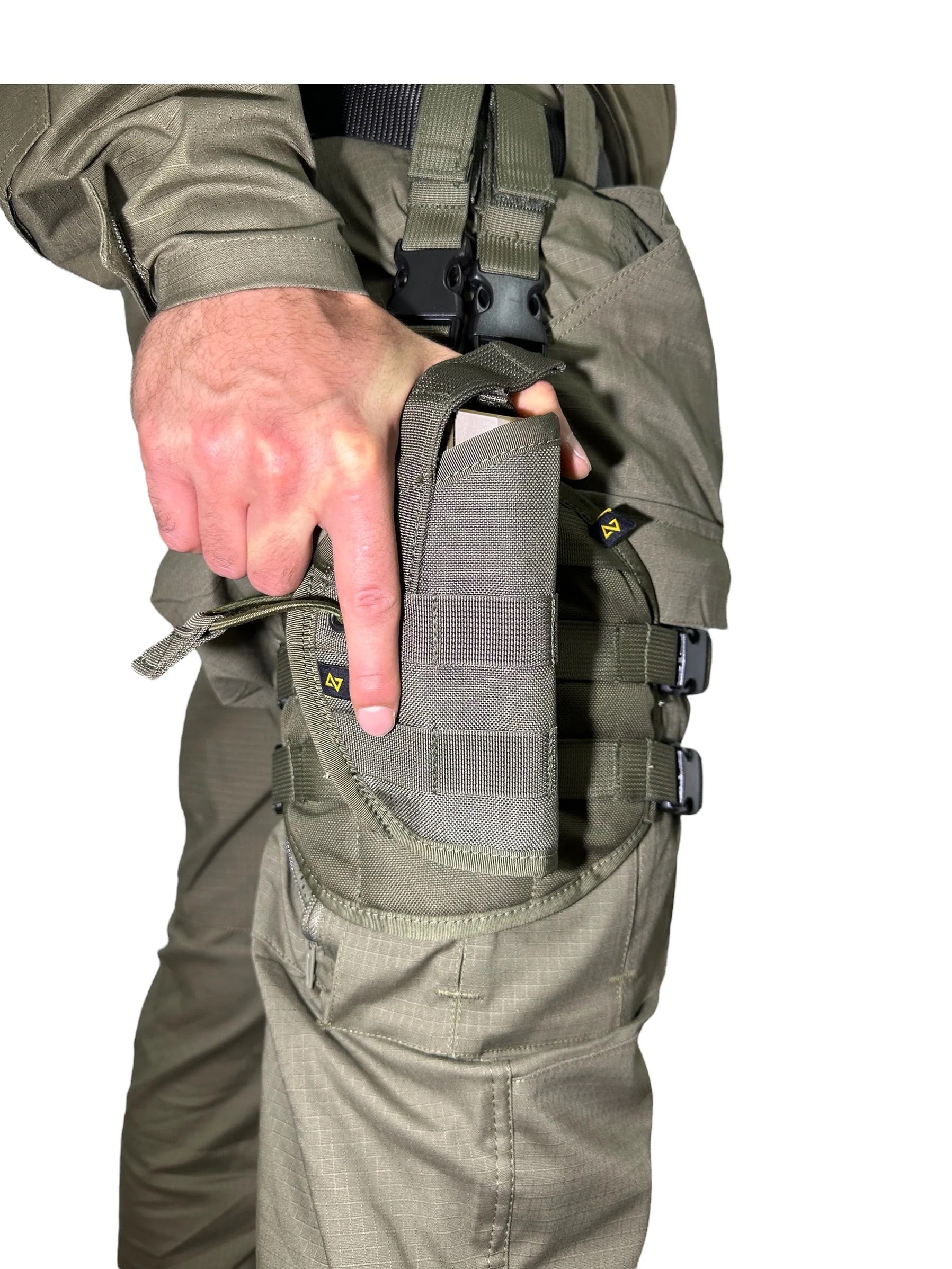 נרתיק איכותי ומודולרי של ליאור טק, המתוכנן במיוחד להשתלבות בפקל הירך שלך. מיועד לשימוש יומיומי, יציב ונוח, ומאפשר שליפה מהירה יחד עם אפשרות לשתי רמות אבטחה – לנשיאה בטוחה גם בתנועה.